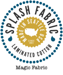 Splash fabric is a laminated cotton fabric that is manufactured overseas but is based in Seattle Washington. Splash is a pliable, laminated cotton that is soft to the hand, easy to wash and whip clean, eco-friendly, Food Safe, and a durable material. You can wash and Iron this fabric, and it's just so cute!